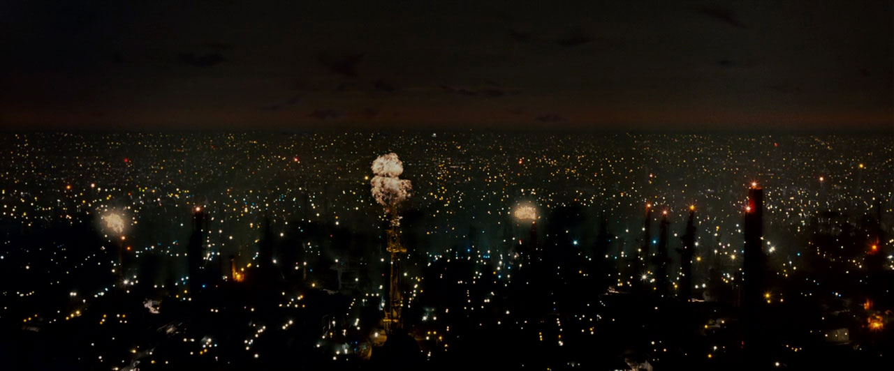 This picture of Blade Runner is a large set piece made completely by hand. There was no CGI used in the film. What you are seeing is a miniature. A man would look like Godzilla walking through the set, yet it takes on the shape of a dystopian metropolis extending for miles around.