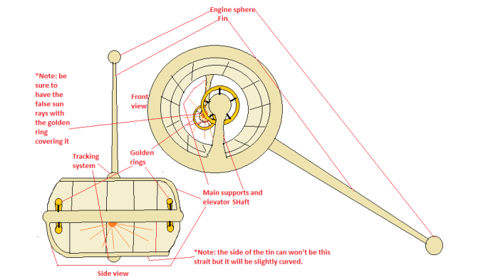 Notice the two forms of light here, the sun on the right and the artificial sun near the middle of the ship.