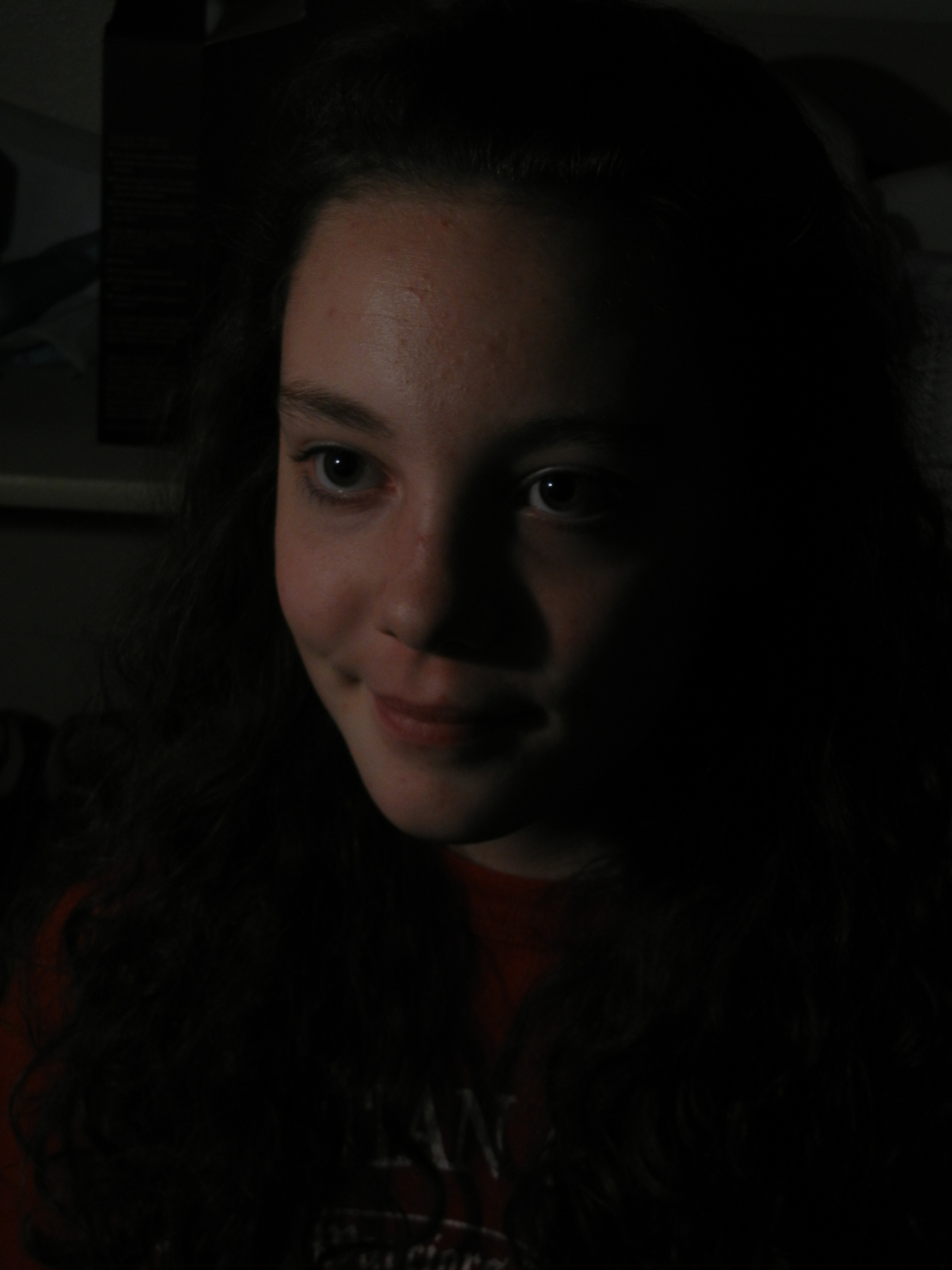 Back in the real world now, Pat’s middle child, Sarah, is a piano student of mine. After a lesson at their house, Pat lent me his camera and I went on to take some pictures of Taylor. She was a good sport, giving me many different looks. The first batch of pics were in a room with too much light.
