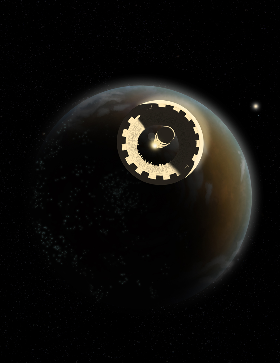 For a while we went with the doughnut-shaped Celestial City in front of the terraformed Mars. The critic in me was screaming for something else though… something to spice things up!